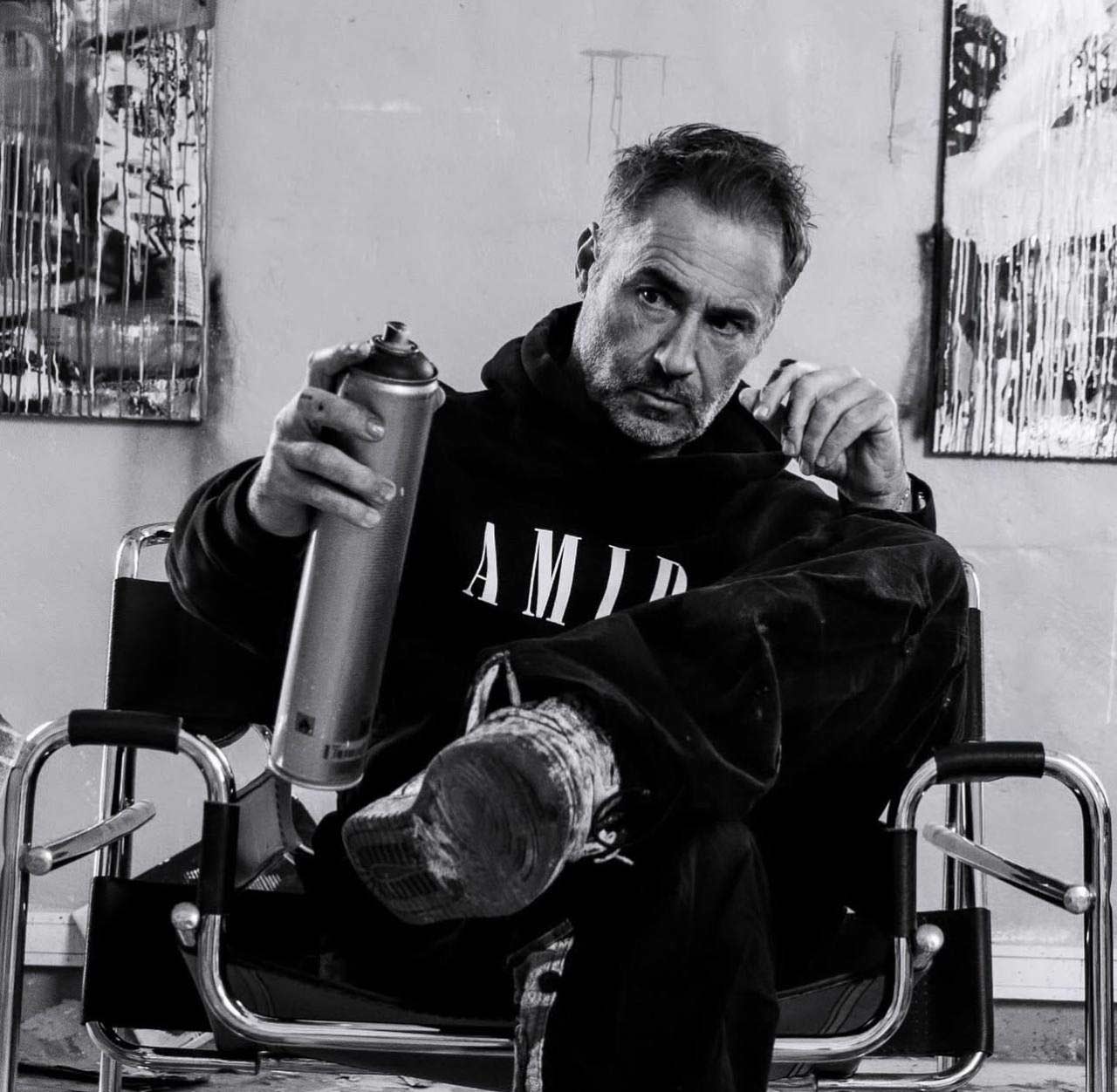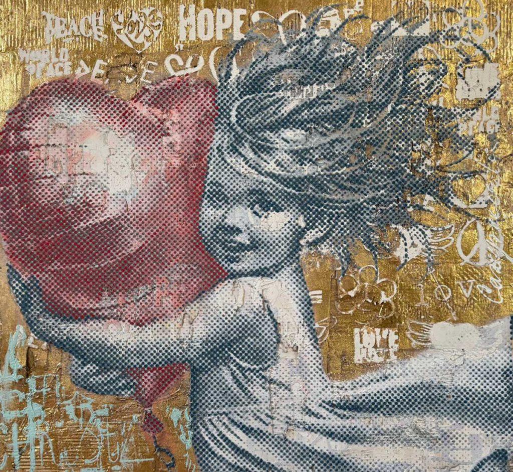 His art moves between urban reality and iconic imagery – inspired by pop culture, brands, superheroes and classical elements.