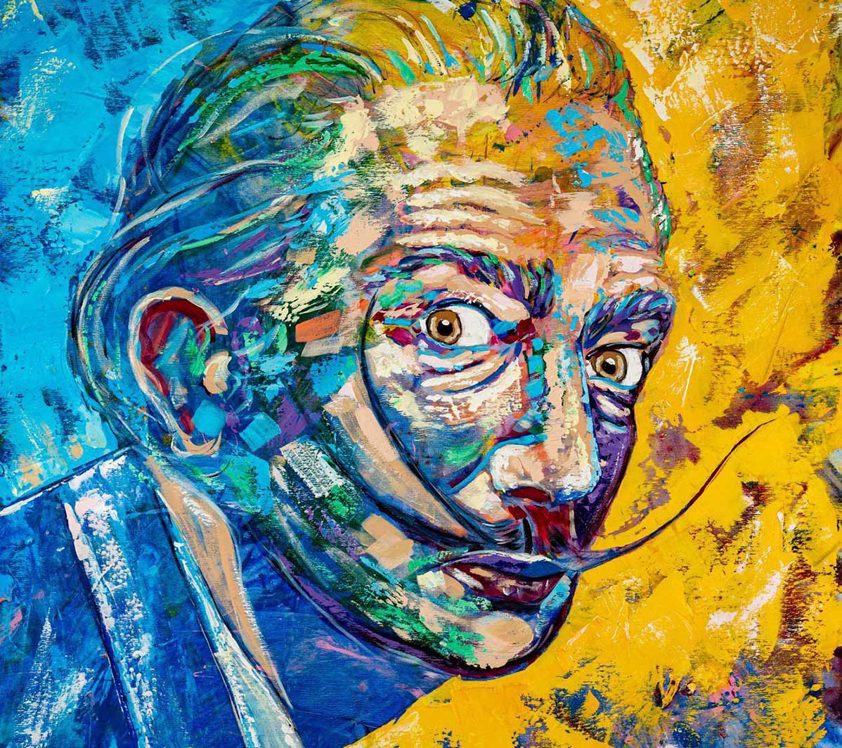 His portraits are created using a dot technique reminiscent of pop art and at the same time reminiscent of pointillism. An image is created from a multitude of small dots, which allows the viewer to see a clearly recognizable face from a distance, while the structure of the individual dots becomes clearer on closer inspection.