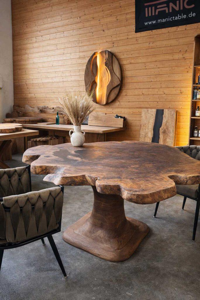 In addition to wall art, Manic also creates exclusive designer tables made of wood and epoxy resin, which transfer the concept of material, form and individuality to furniture.
