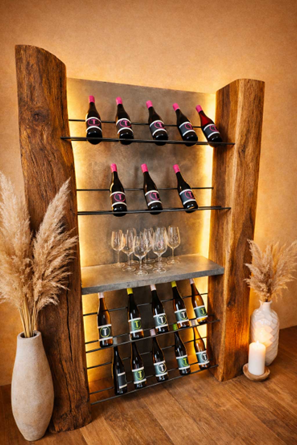 Manic stands for expressive wall art, wine racks and tables that combine natural materials with modern design techniques.
