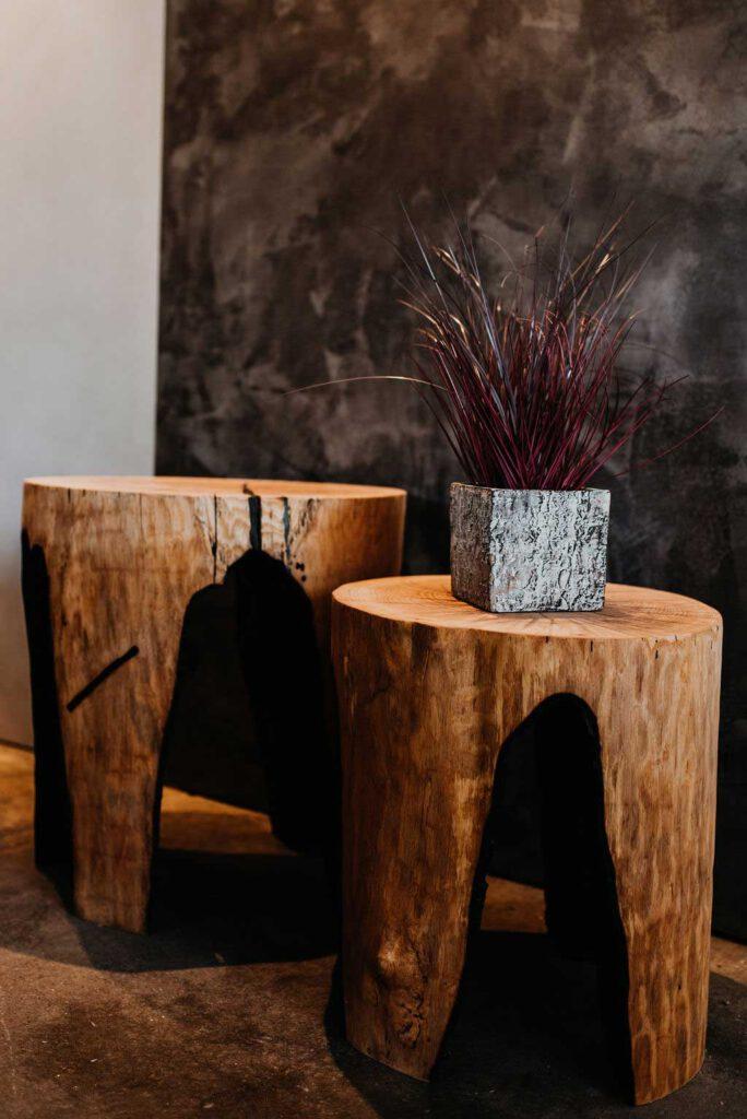 The combination of solid wood, epoxy resin and textured surfaces with a concrete look creates unique compositions with depth, contrast and exciting light reflections. Each piece is a handmade, one-of-a-kind item that combines natural structures with contemporary design.